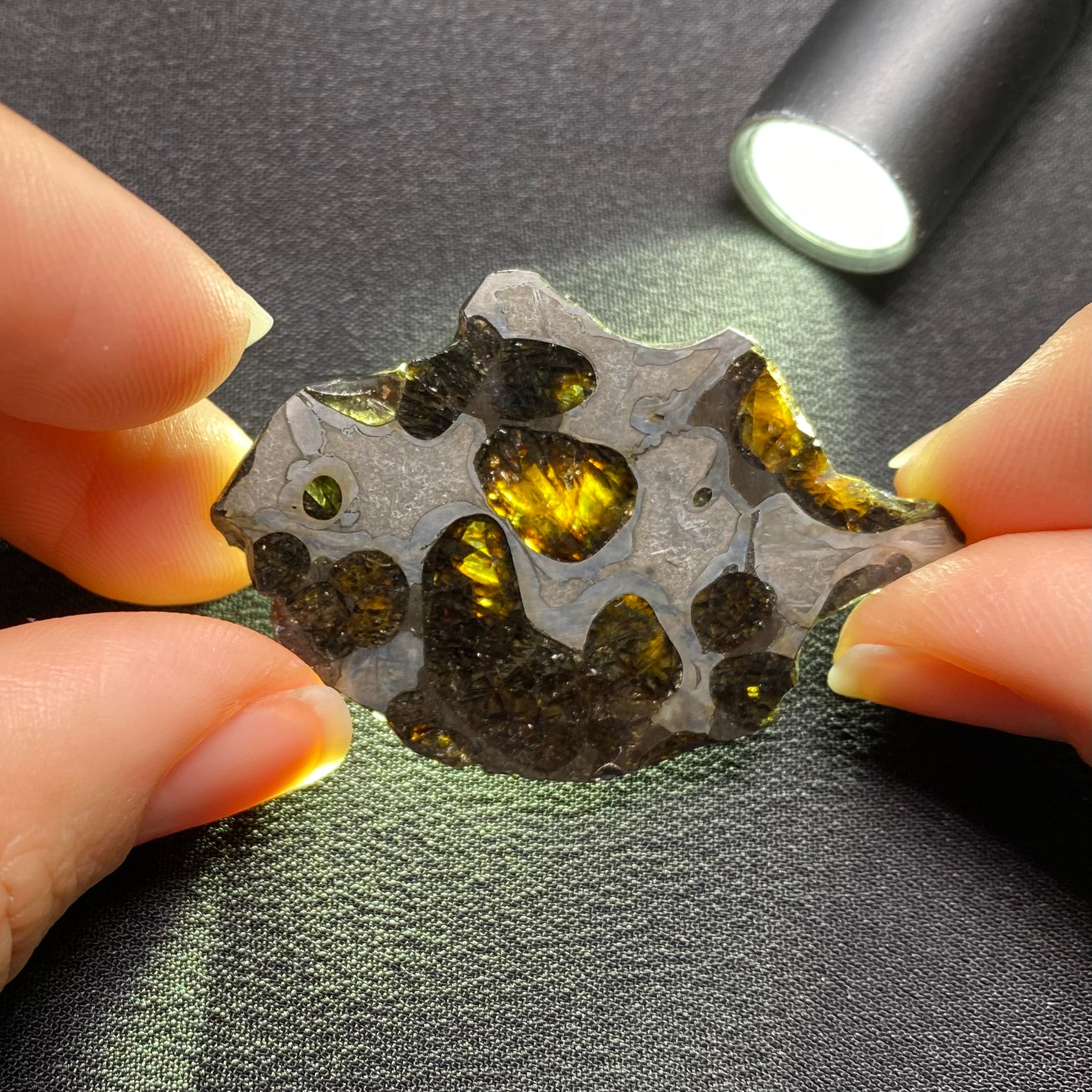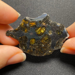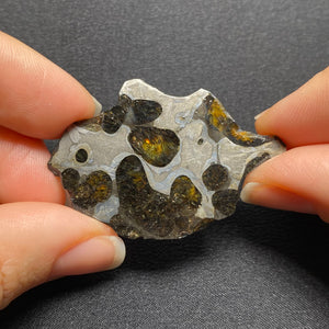 A beautiful piece of Brenham pallasite, one of the most famous meteorites containing both iron and olivine crystals. Pallasites are a rare type of stony-iron meteorite, believed to originate from the boundary between the metal core and silicate mantle of an asteroid.