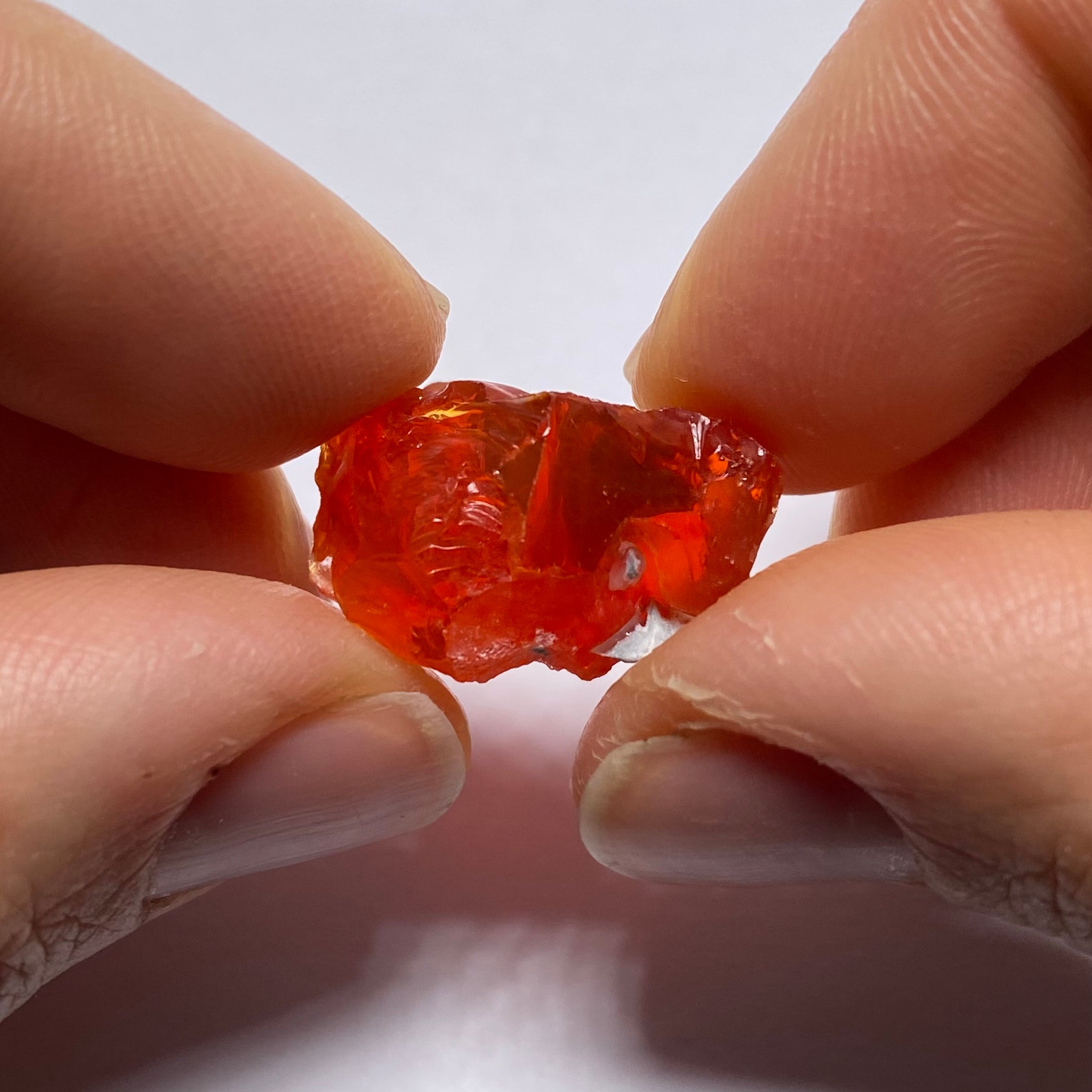 Top Red/Orange Mexican Fire Opal Ideal beginner stone. Fire opal polishes and cuts without any issue 3.417 grams / 17.085 carats / 19 x 14.3 x 11.5 mm / clean