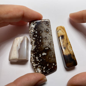 Remarkable petrified wood showing distinctly different graining on all sides. How cool is that! Lots and lots of unique cabs could be cut or eave as-is, because it's definitely a one-of-a-kind specimen