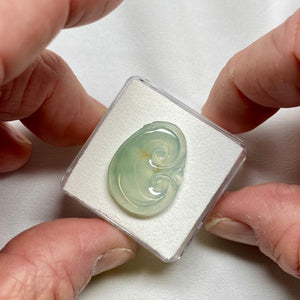 Carved Burmese Type A jadeite jade carving with a softly rounded, organic form. The material displays pale green to light celadon coloration with semi-translucent depth, allowing light to pass through the carving and emphasize its fluid contours. The polished surface reveals gentle internal clouding and natural tonal variation typical of untreated jadeite.