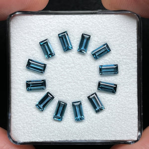 London Blue topaz is a popular gemstone variety found in Brazil, known for its intense blue color. The baguette cut, characterized by its elongated shape with stepped facets, adds a touch of sophistication and modernity to the design.