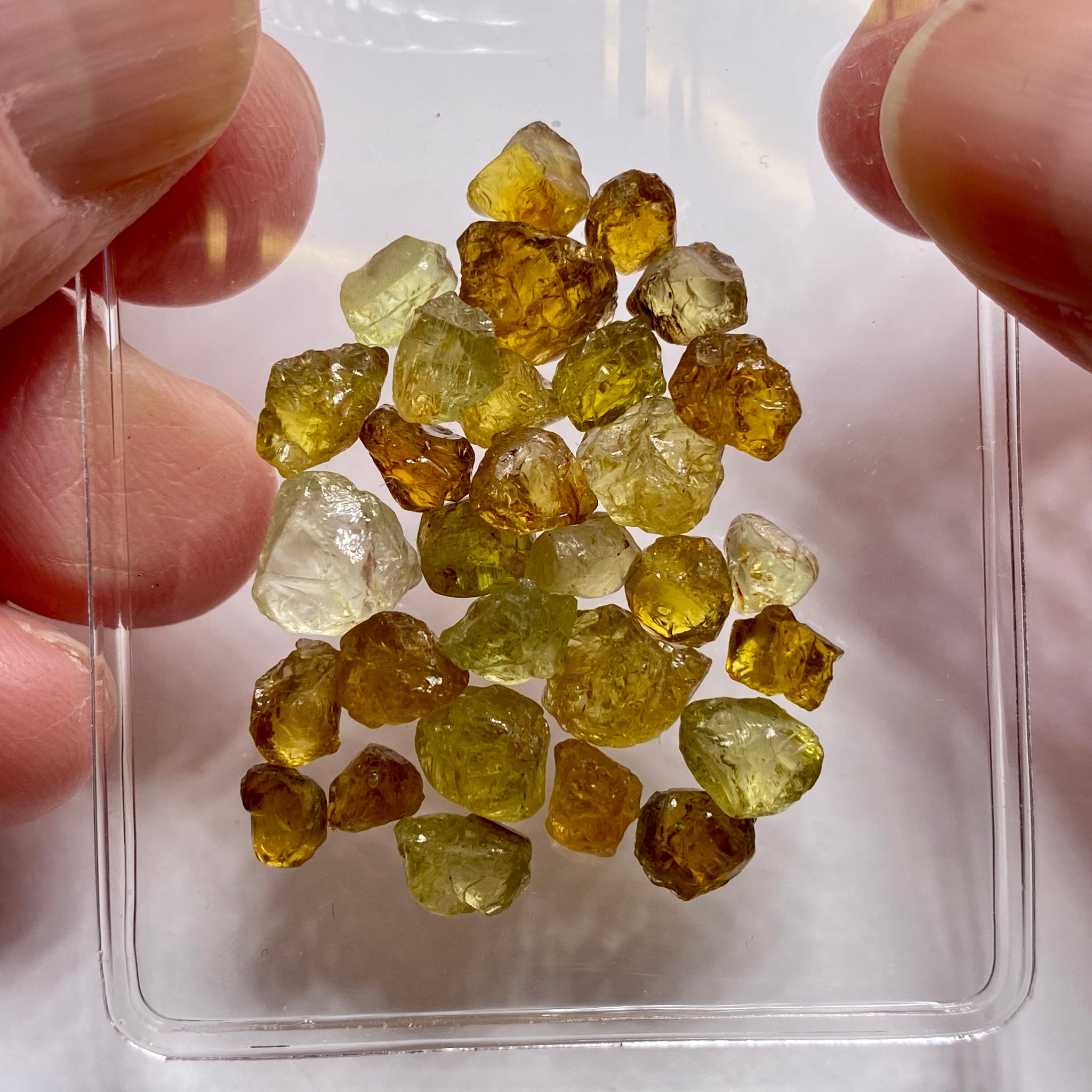 Bright warm hues of green, orange, yellow, gold, and brown. Sourced from Sandere, Mali. Mali garnet is a natural grossular-andradite blend known for higher dispersion than many garnets, which can add extra brightness and “sparkle” in well-cut stones. Material like this is typically selected for small calibrated gems or accents where lively color and brilliance matter most
