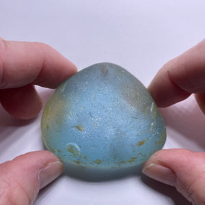 A massive 134.74 gram Natural blue alluvial topaz from Colombia. Waterworn (alluvial) piece with strong blue saturation