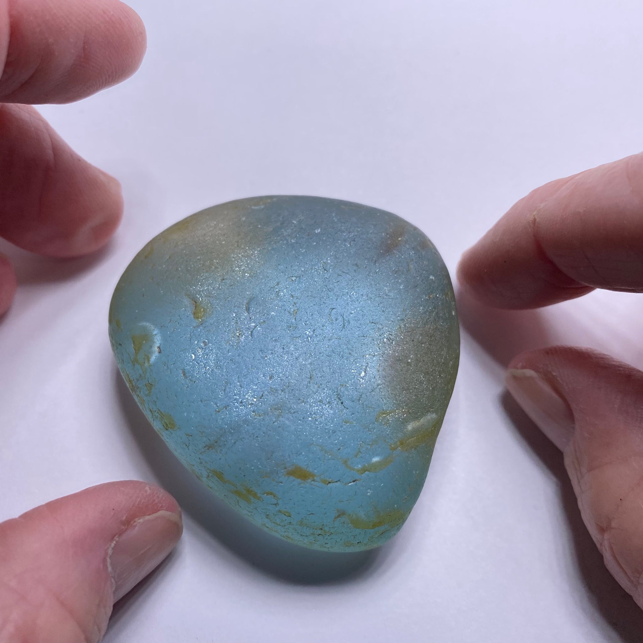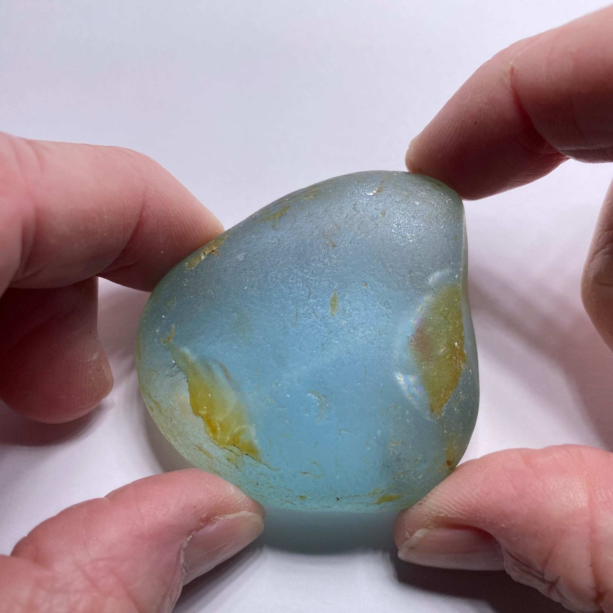 Most blue topaz on the market is created by treatment, which is why a naturally blue stone of this size stands out. The last photo shows the piece is not perfectly clean, but the combination of genuine natural color, saturation, and scale is the point here—this is a collector-grade alluvial topaz that is rarely seen in the trade.