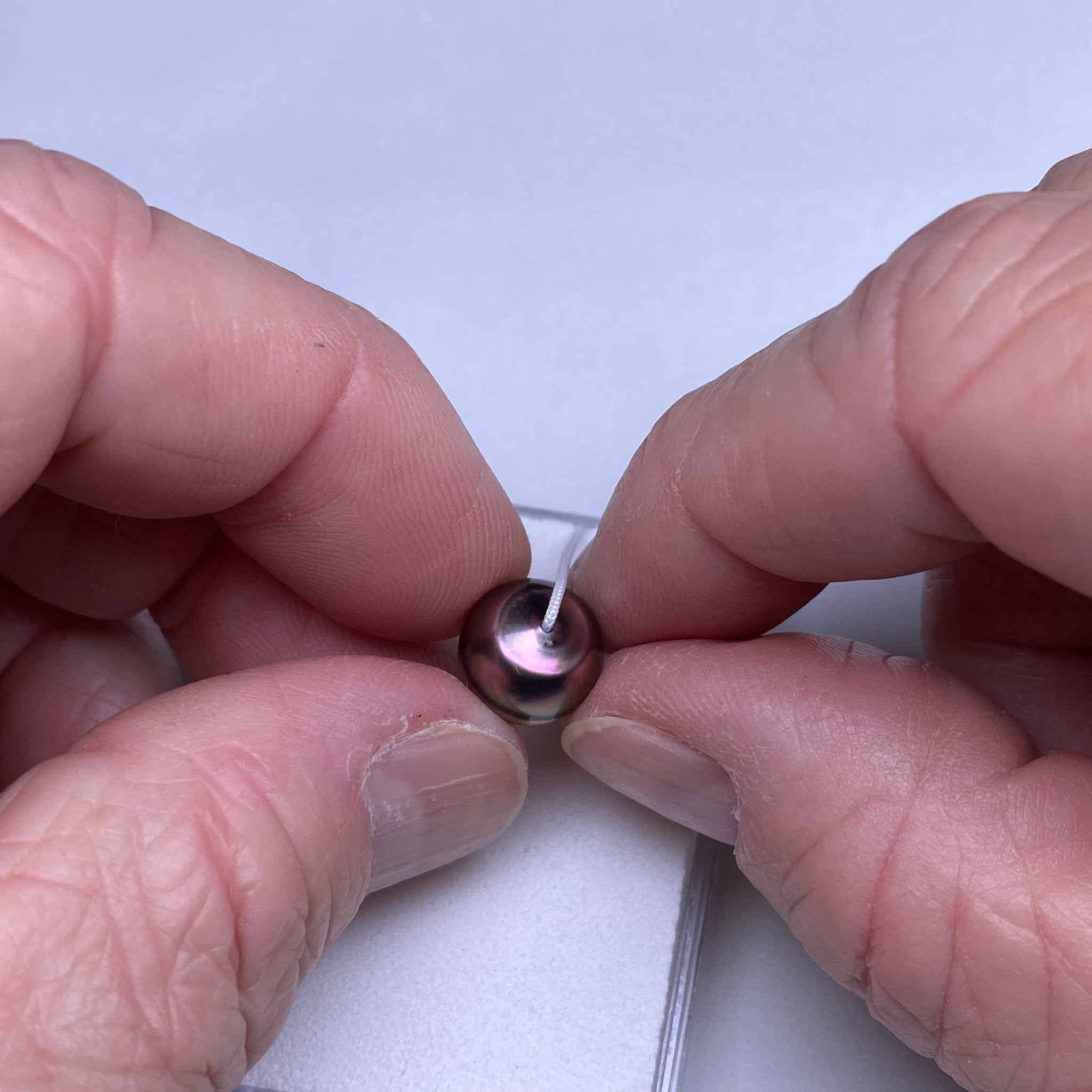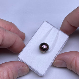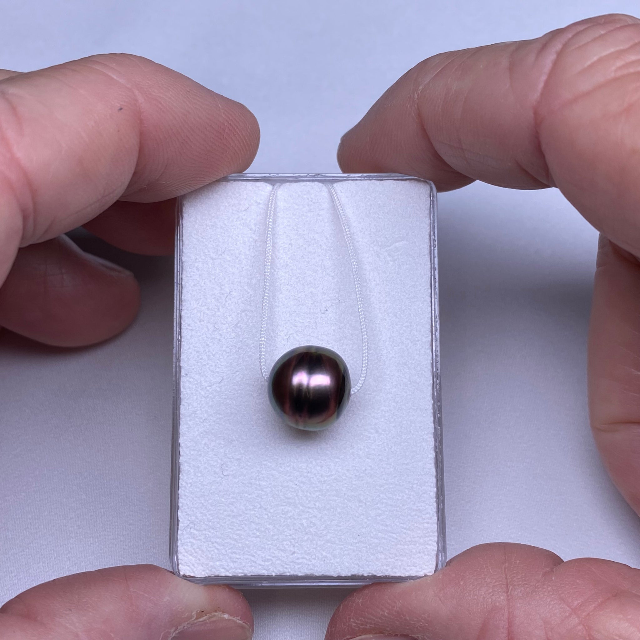 A natural saltwater pearl from an old collection, showing a dark body color with iridescent overtones. Pearls of this form are most often found in Pacific oyster beds, including regions around Tahiti and nearby island groups. The rounded shape and organic surface indicate natural formation rather than cultured growth