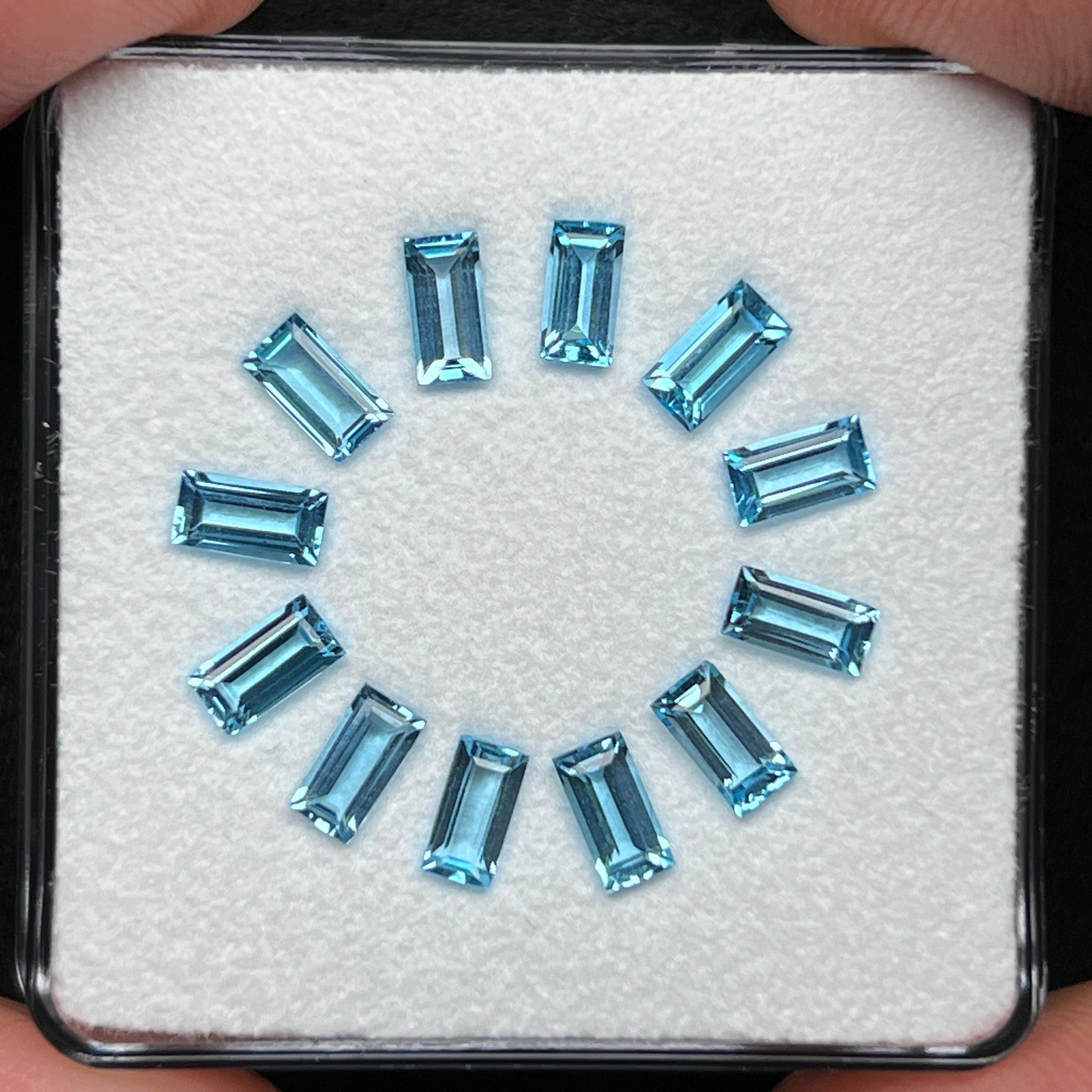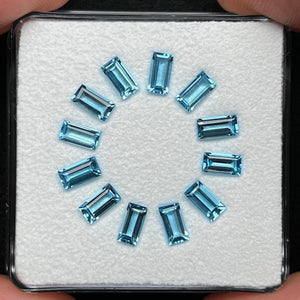 Wreath of sleek and elegant Swiss Blue Topaz baguettes from Brazil.