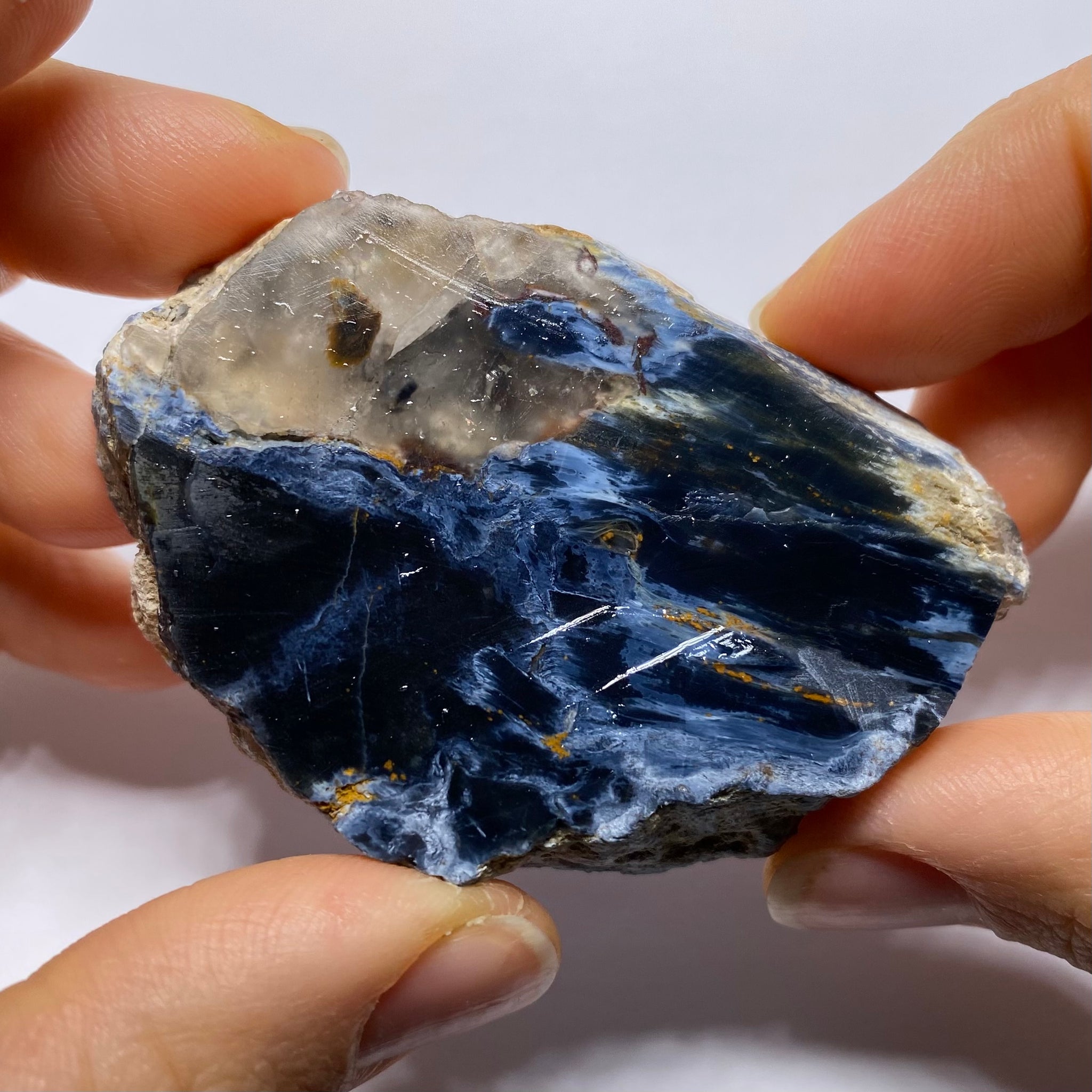 AAA Chatoyant picturesque slab of Namibian Pietersite. This is old-stock material, mined when the finest material was being found. Shown wet to simulate polish.
