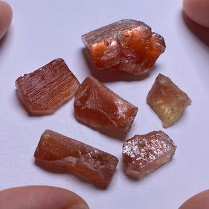 6 pieces / 14.832 total grams / 74.16 carats / 12.36 carat average / some stuff to trim off during preforming