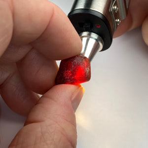 Another way to heat zircon is in a chemistry tube or beaker directly over an open flame. The important thing to remember is to watch the stone closely. Once it begins to lighten color it can do so quickly. When handling the hot stone, use warm tweezers to avoid shocking the stone.