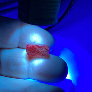 Color Change and UV Reactive Garnet from the Umba Valley, Tanzania. Displays a daylight shift from lighter tones to warm orange-red under incandescent light, and shows a striking red fluorescence under UV. Garnets from the Umba Valley are known for their unusual chemistry, which can produce both color change and fluorescence in the same stone—an uncommon combination in the gem world. These traits make these garnets highly sought after by cutters and collectors alike