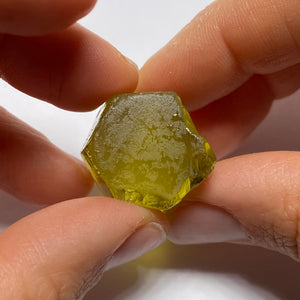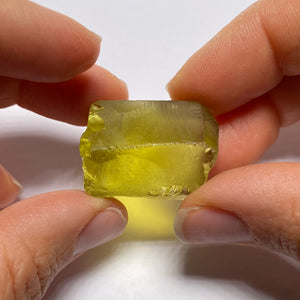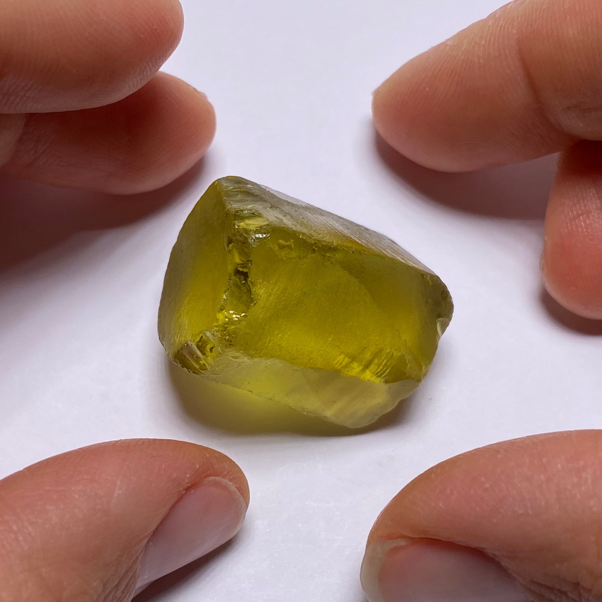 This Oro Verde from Brazil displays a bright, golden hue with a slight green undertone, a result of gamma-ray irradiation applied to natural quartz. Known for its vibrant color and excellent transparency, this material is popular for faceting and carving. Brazil remains the primary source for high-quality Oro Verde, valued for its durability and affordability in the gem market.