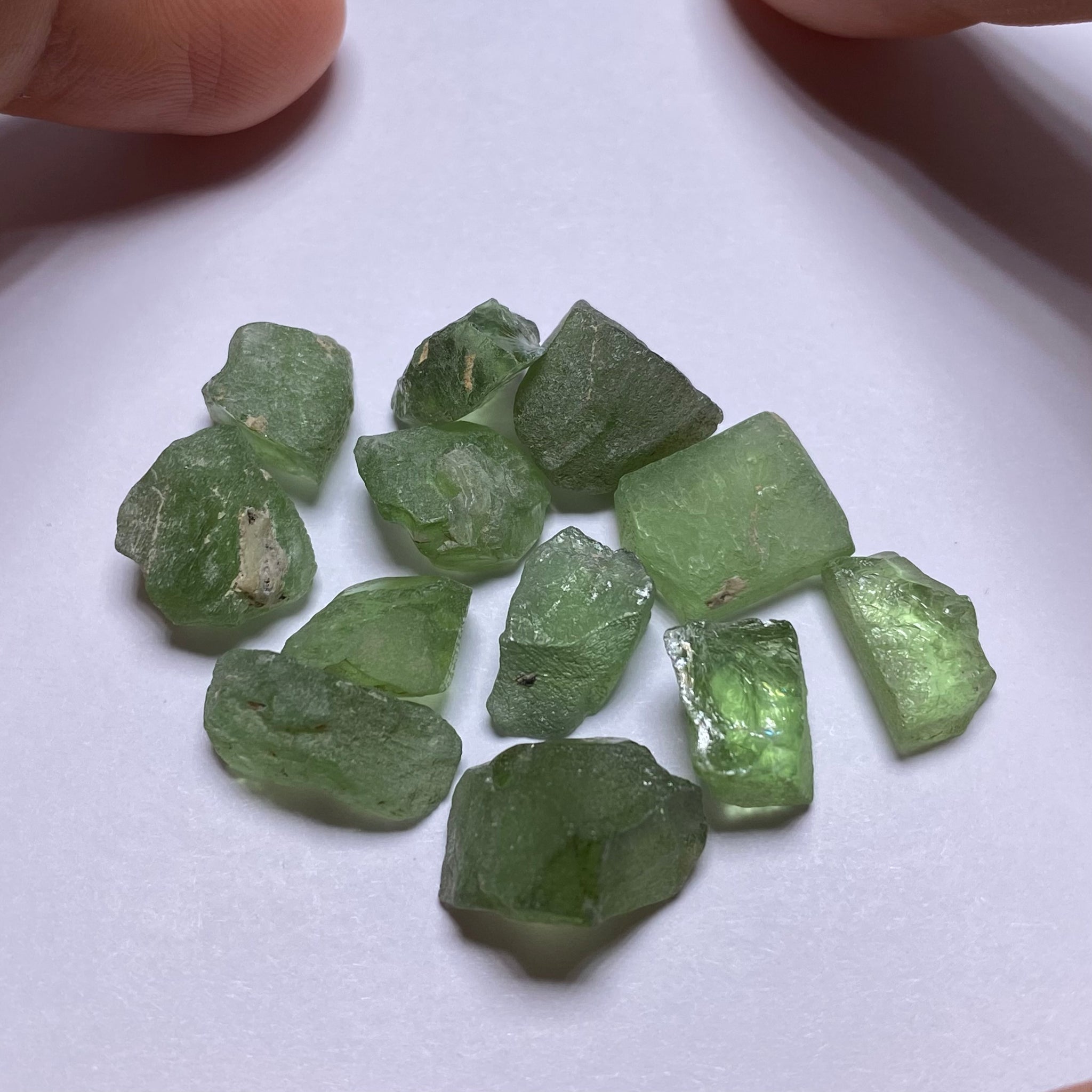 12 pieces / 14.54 grams / 72.70 carats / 6.05 carat average / these will facet mostly eye-clean or better. There might be the occasional small issue to deal with