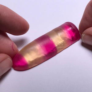 Red/Yellow Bi-Color Synthetic Corundum in a range of sizes (grams). Split boule.