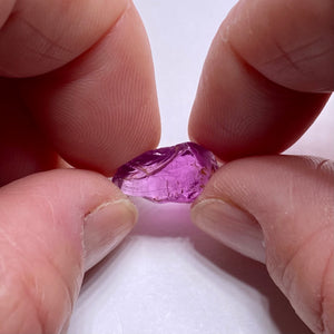 Umbalite Garnet from Tanzania. Vivid pinkish-purple color with perfect saturation. Umbalite is a garnet variety found only in East Africa, representing a mix of pyrope, almandine, and spessartite. Its distinctive color sets it apart from other garnets and makes it a highly regarded cutting material. Popcorn bidding is in effect: bids placed in the last 5 minutes will extend the auction by 5 minutes