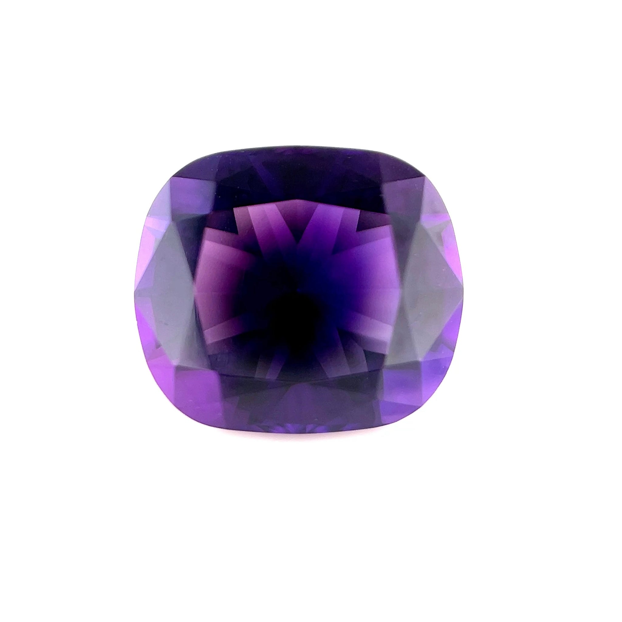 Uruguayan amethyst showing a deep, saturated purple with strong color concentration toward the center. Material from Uruguay is known for producing some of the most intense natural amethyst colors, typically darker and more uniform than material from many other sources. Stones of this quality are valued for depth of color and consistency rather than lightness or pastel tones.
