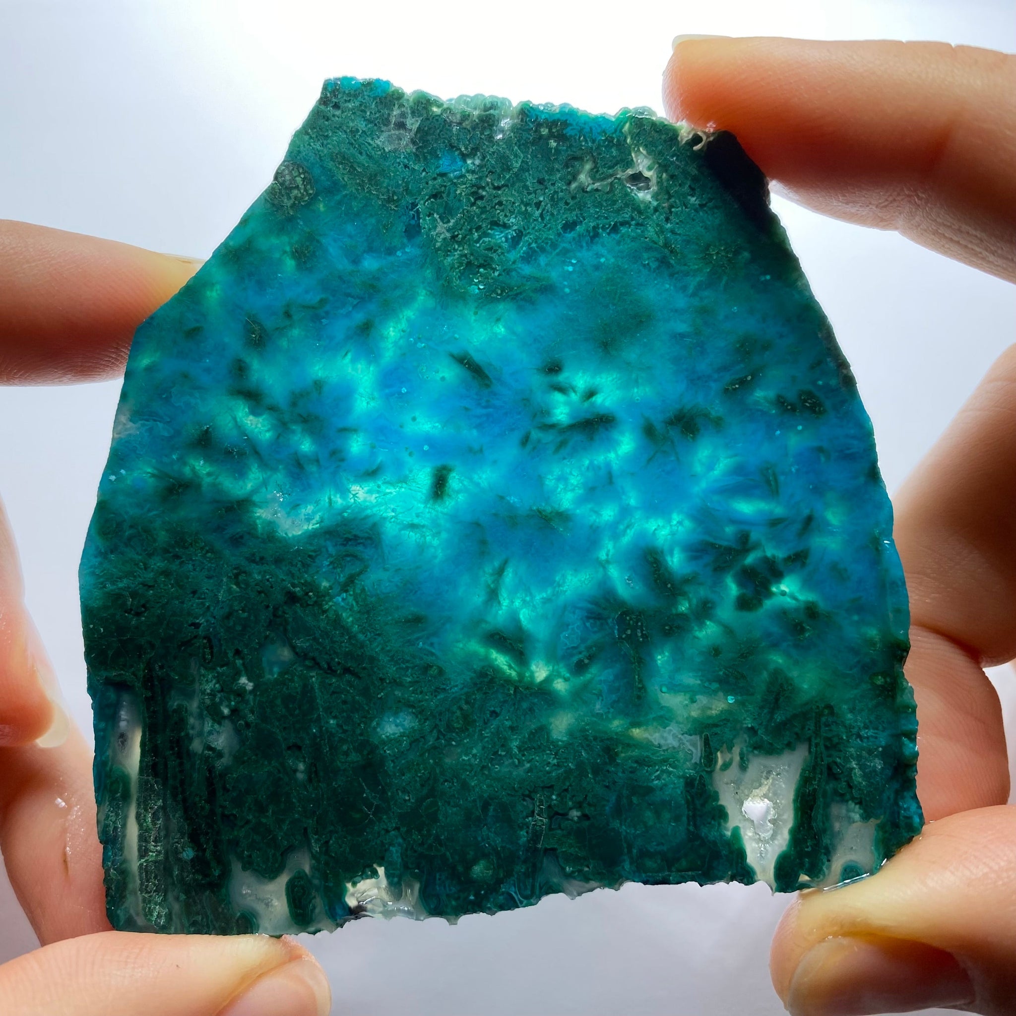 Gem Silica with Sagenite slab. Collected in 1990’s from Ray Mine, Arizona. Shown damp to simulate polish