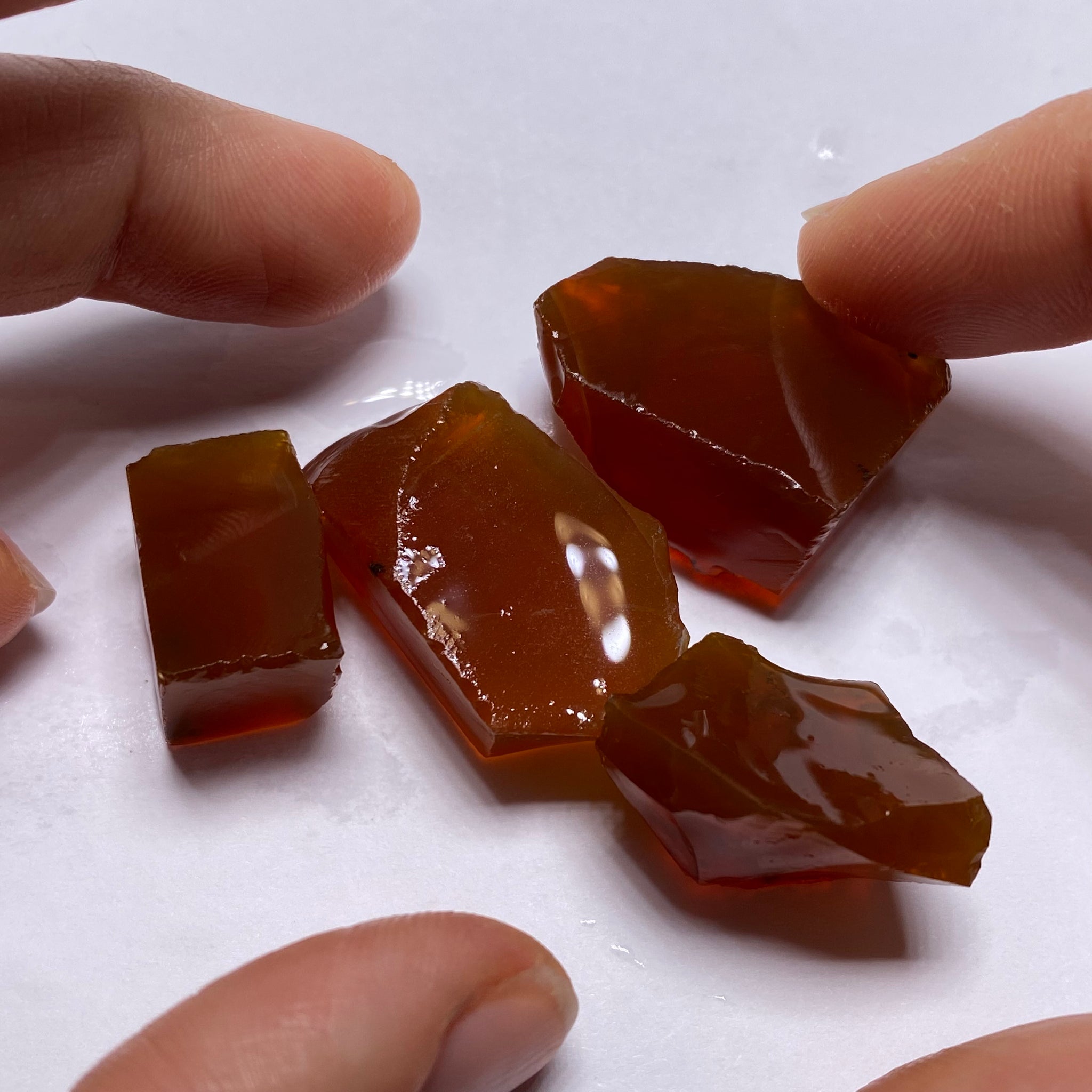4 pieces / 25.979 total grams / 129.895 carats / 32.47 carat average / clean