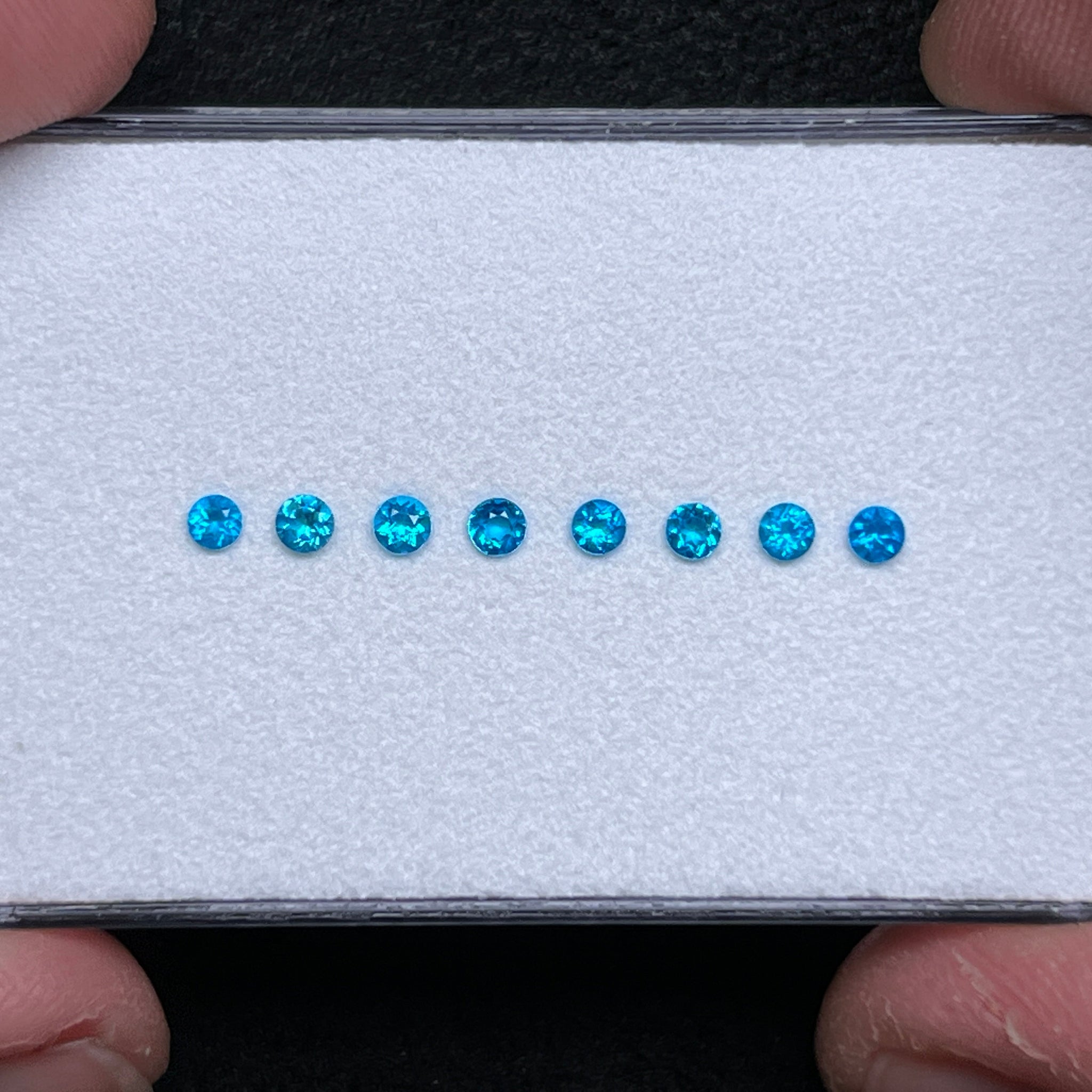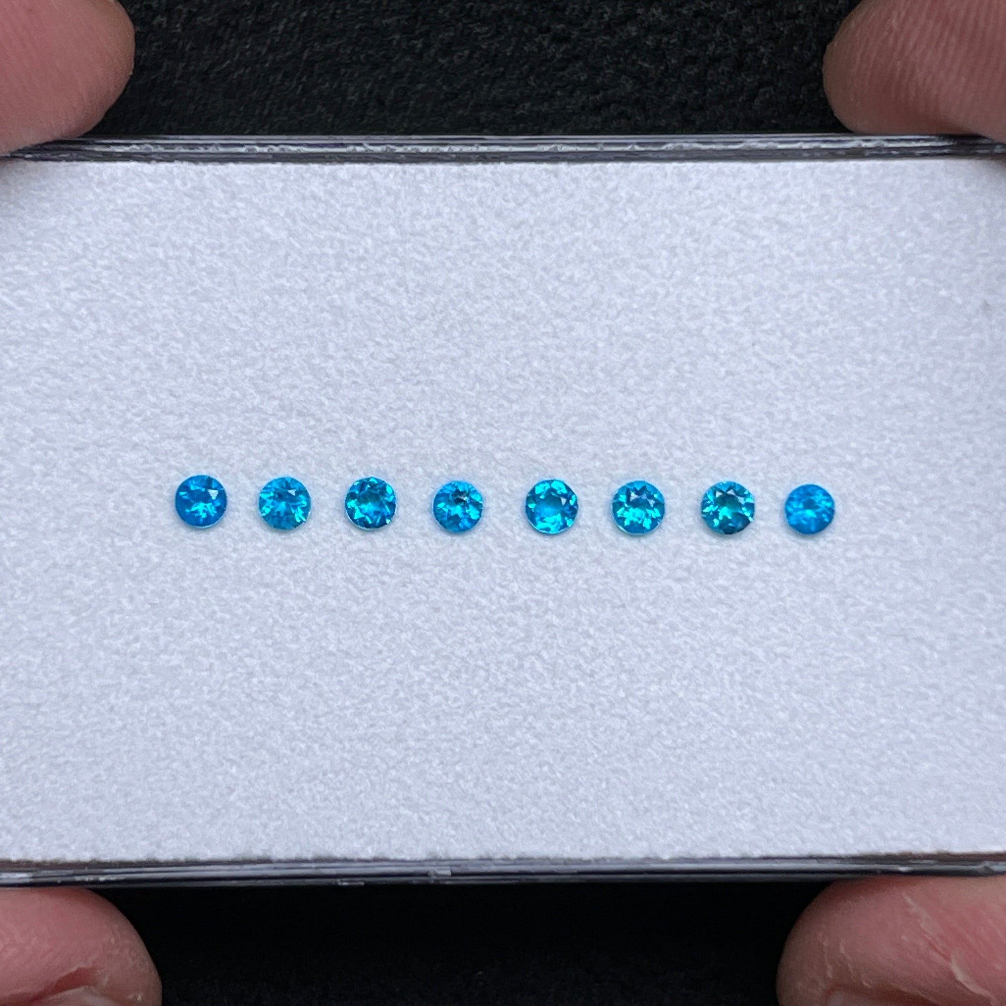 Caribbean blue Apatite from Madagascar. Sparkling rounds.
