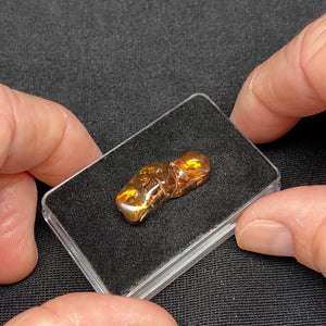 Fire Agate from Arizona, showing the signature iridescent play of fiery orange and gold. This variety of chalcedony is unique to a few regions in the American Southwest and northern Mexico, with Arizona producing some of the finest material. The effect is caused by layers of iron oxide within the stone, which create shimmering flashes of color that shift as the stone is moved in the light. Unlike opal, fire agate’s play of color is permanent and cannot be replicated synthetically, making it highly prized by collectors.