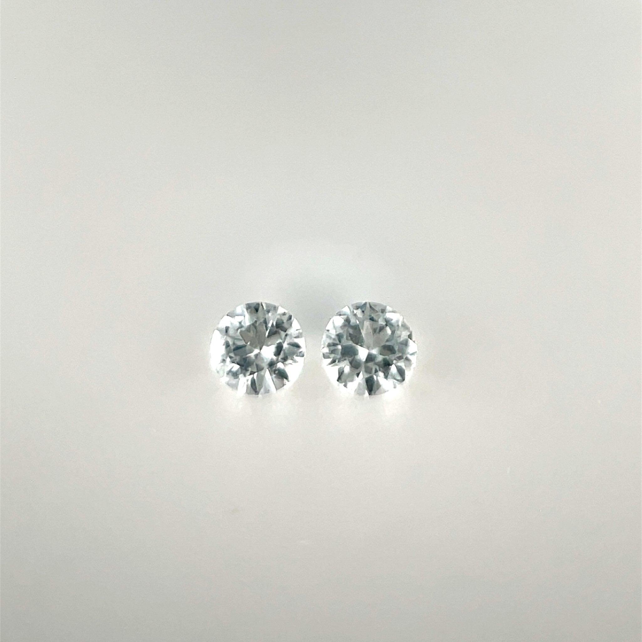 Matched pair of round brilliant Phenakite from Russia. Phenakite is a rare beryllium silicate gemstone, highly prized by collectors for its scarcity and its exceptional brilliance, which can rival that of diamond. Transparent faceted stones are difficult to obtain, making fine examples such as this pair especially sought after.