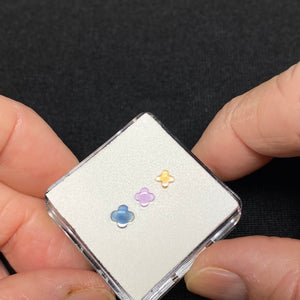 Set of three unheated sapphires from Madagascar, each carved in the iconic quatrefoil design popularized by Van Cleef & Arpels. This timeless motif, resembling a four-leaf flower, has become one of the most recognizable symbols in high jewelry, celebrated for its elegance and balance.