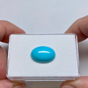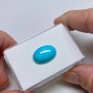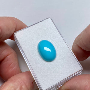 Exceptional cabochon of Sleeping Beauty Turquoise with a classic, even sky-blue color. This material is from the famous Sleeping Beauty Mine in Globe, Arizona, which produced some of the world’s most recognizable turquoise. Known for its pure, robin’s-egg blue without matrix, Sleeping Beauty became the standard for top-quality turquoise in both the jewelry trade and among collectors.