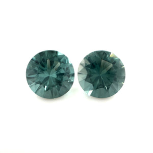 Precision faceted Tourmaline pair from Mozambique. These round cuts show shifting tones of gray, green, and blue depending on the angle and light, a characteristic that makes them both versatile and distinctive. Mozambique remains one of the most important modern sources for fine tourmaline