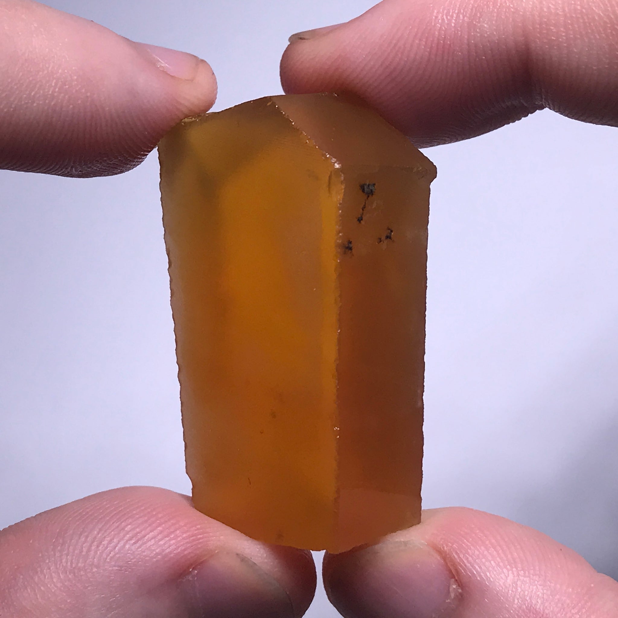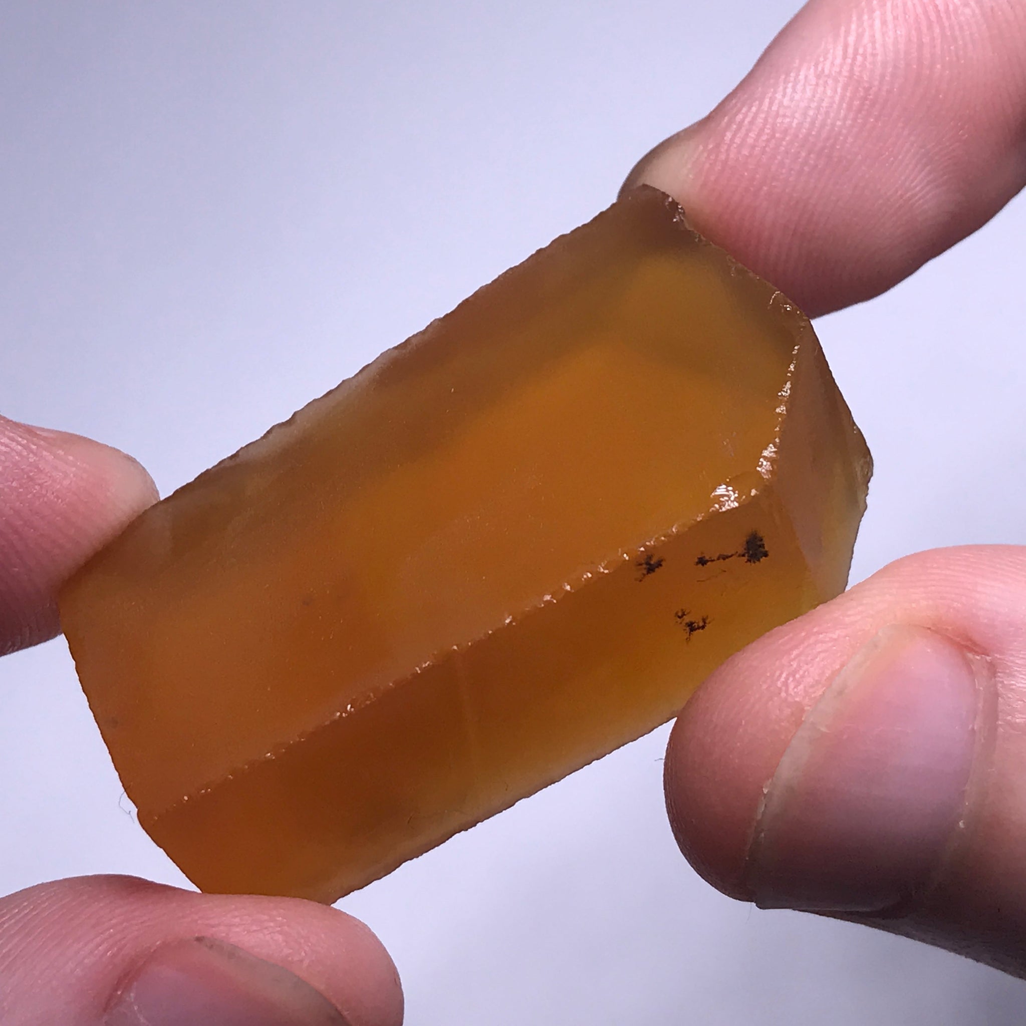 Tangerine orange Juniper Ridge Fire Opal. Sourced from our home state, Oregon, USA! These cut and polish smooth as silk. A great beginner's stone with a nice blocky shape.