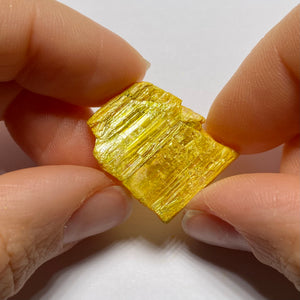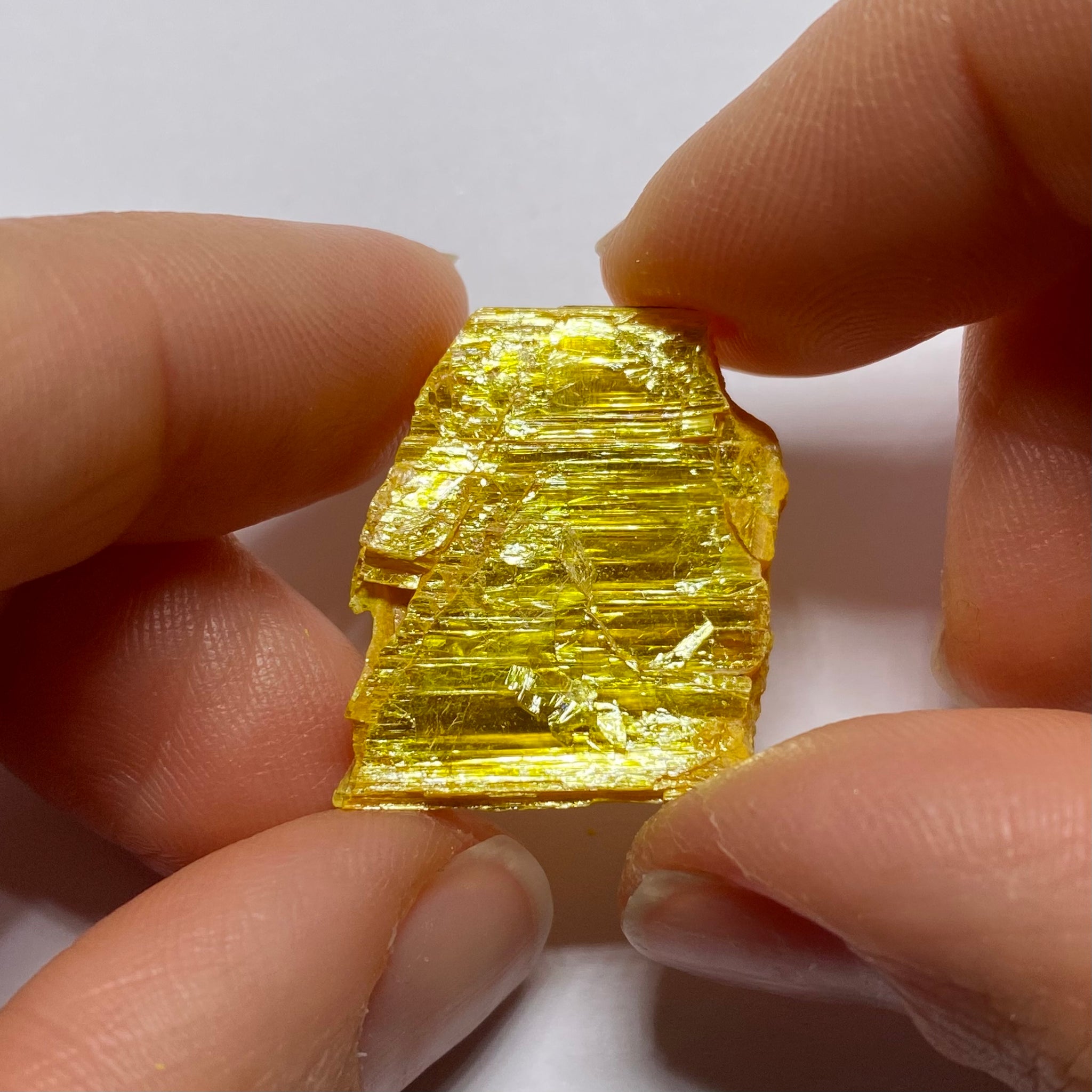 A striking piece of Orpiment, notable for its vibrant yellow color and layered, foliated structure. Orpiment is an arsenic sulfide mineral (As₂S₃) and is often associated with hydrothermal deposits, frequently found alongside other sulfides like realgar. Its name is derived from the Latin words "aurum" (gold) and "pigmentum" (paint), reflecting its brilliant golden-yellow hue. This piece would be a fascinating addition to any mineral collection, especially given its striking aesthetic and the relatively rare occurrence of high-quality crystals like this