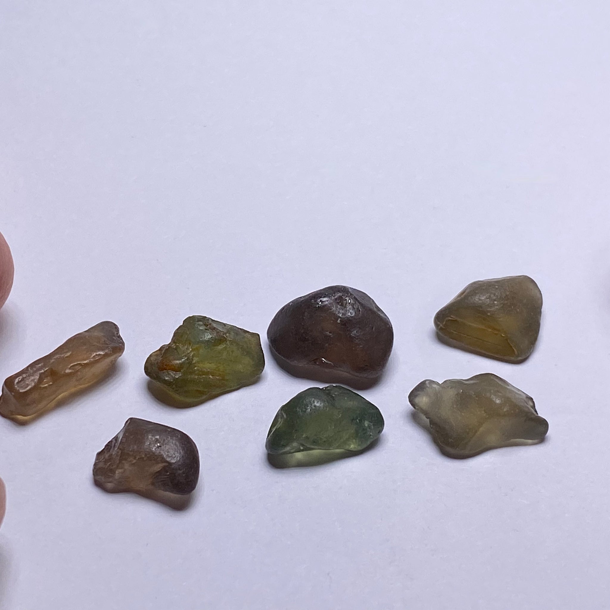 Natural Zircons from Tunduru, Tanzania - Nice colors, including green 7 pieces / 10.038 grams / 50.19 carats / 7.17 carats average / eye clean or better