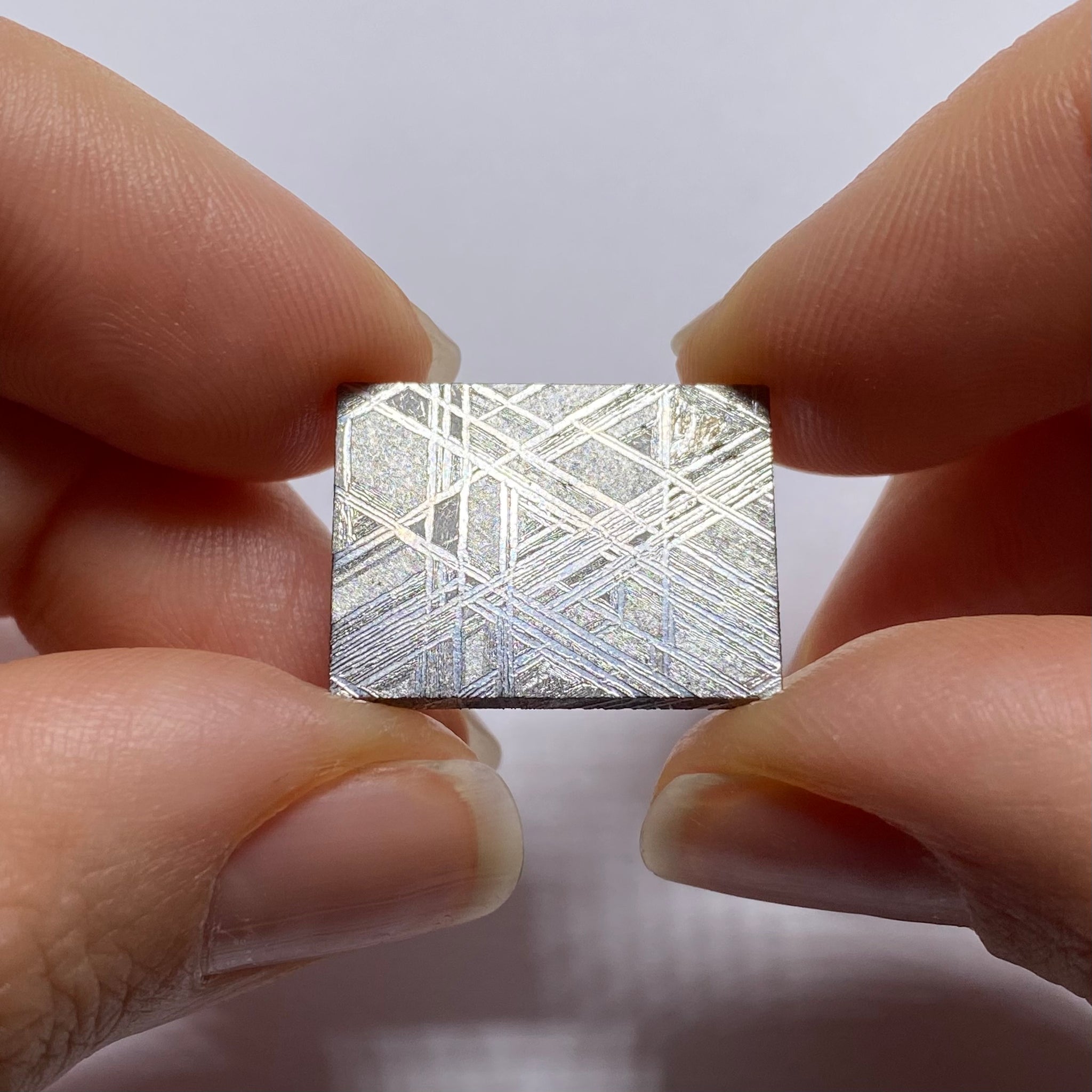 This is a piece of the Muonionalusta meteorite, one of the oldest known meteorites, estimated to have fallen in Northern Scandinavia over 800,000 years ago. It is an iron-nickel meteorite classified as a fine octahedrite and displays the distinctive Widmanstätten pattern, revealed through etching. These patterns are formed by the slow cooling of the metal in space over millions of years. Muonionalusta meteorites are prized for their scientific significance and as collectible specimens.